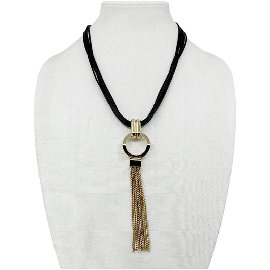 R.J. Graziano gold tone tassel pendant black cord necklace - GM1606