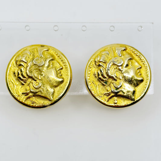 Vintage Gold tone Alexander The Great clip on earrings = GM1610