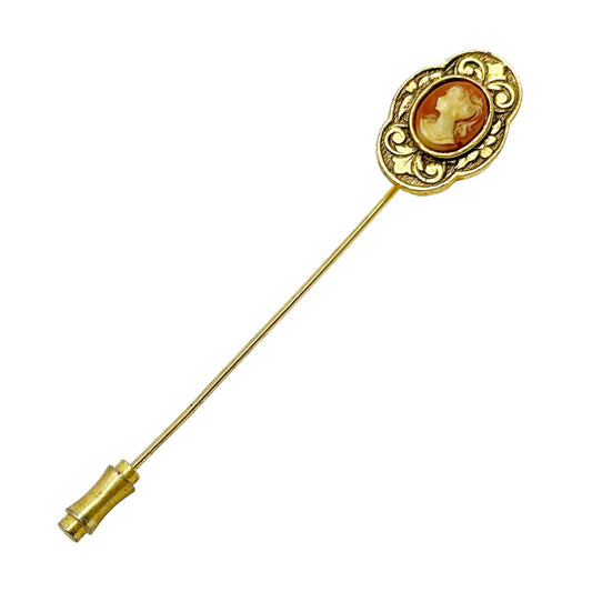 Vintage Gold tone cameo stick hat pin Brooch