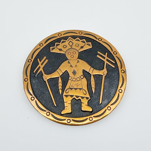 Vintage Navajo Warrior Kachina Copper Brooch