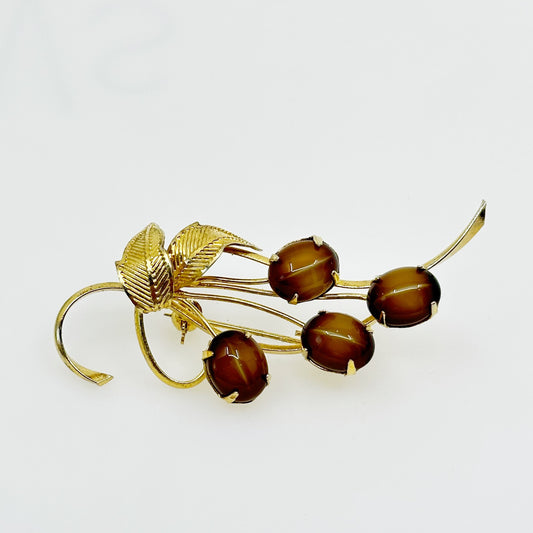 Vintage Gold Tone tiger eye Brooch