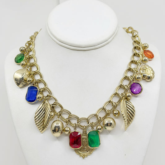 Vintage Gold tone Acrylic gemstone charm necklace