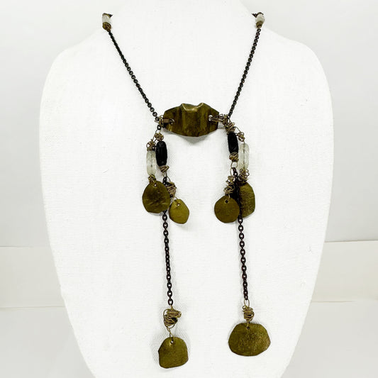 Mid Century brass & carved glass beads necklace