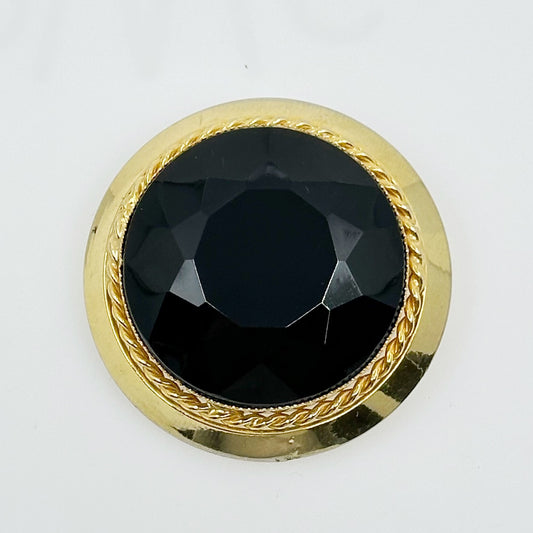 Vintage Gold tone black rhinestone brooch