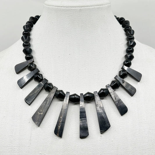 Vintage carved horn beads Nefertiti necklace
