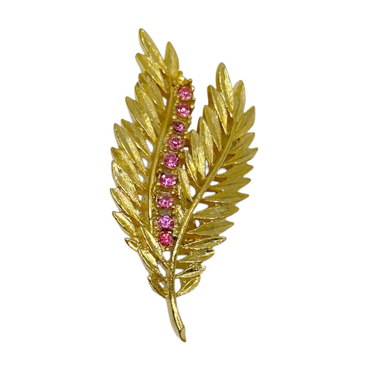 Vintage Gold Tone rhinestone leaf brooch