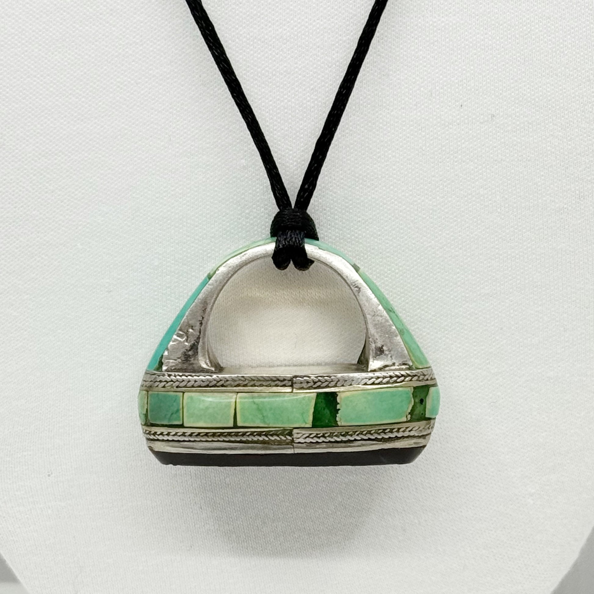 Antique Sterling silver carnelian intaglio & turquoise inlay ring - Pendant GM481