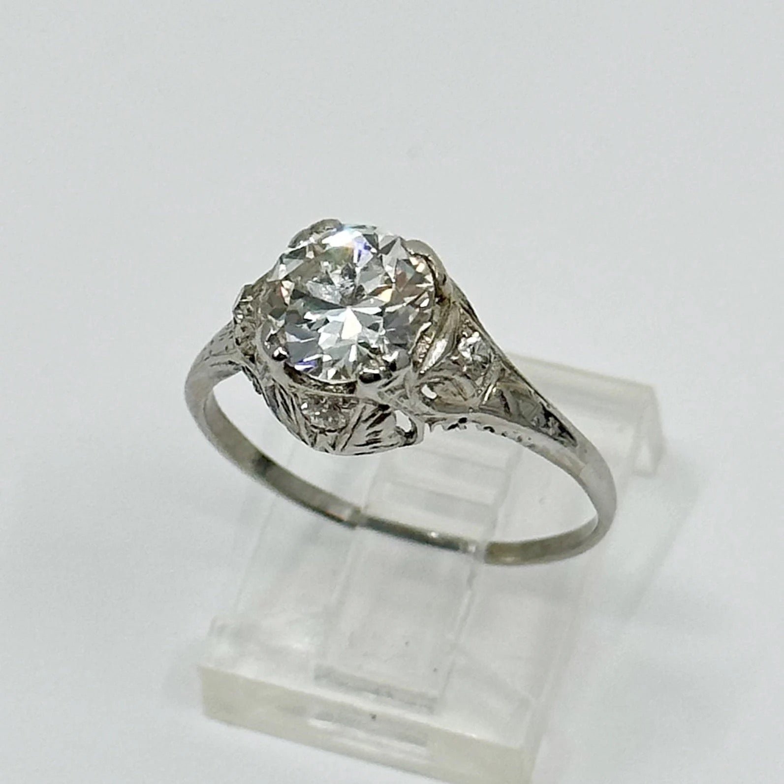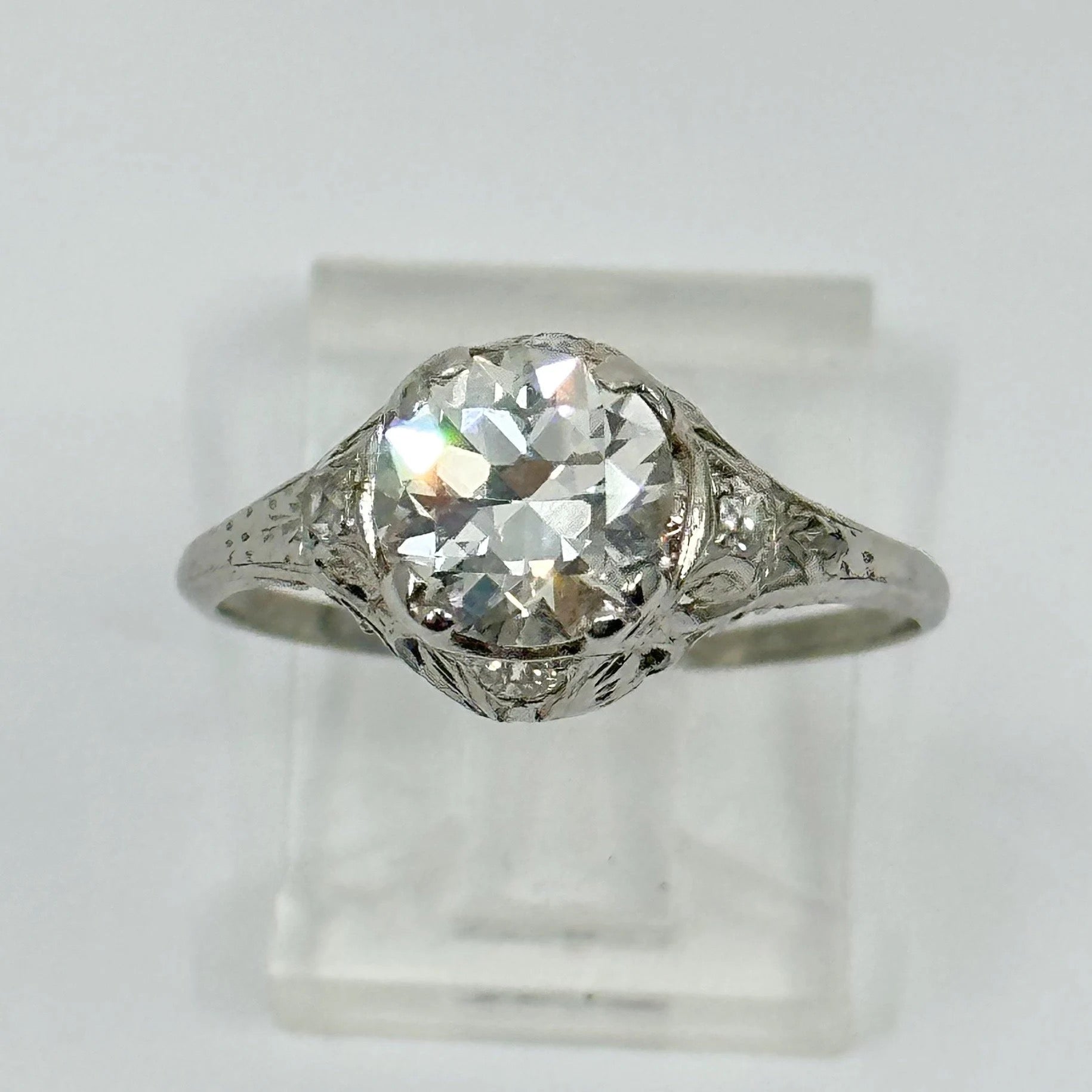 Art Deco 1.65 carat Old European cut diamond platinum engagement ring
