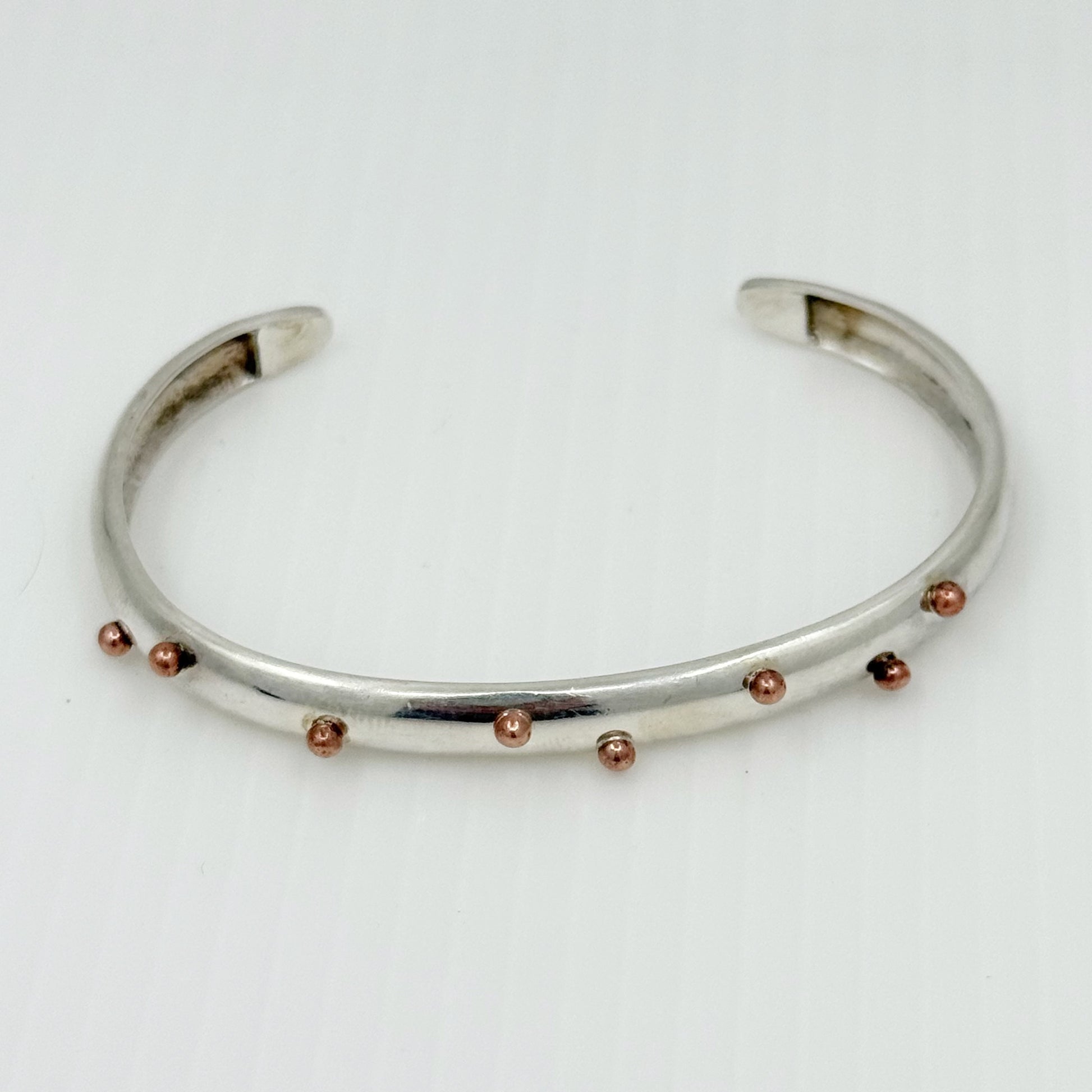 Contemporary sterling silver & copper dot cuff bracelet - GM65
