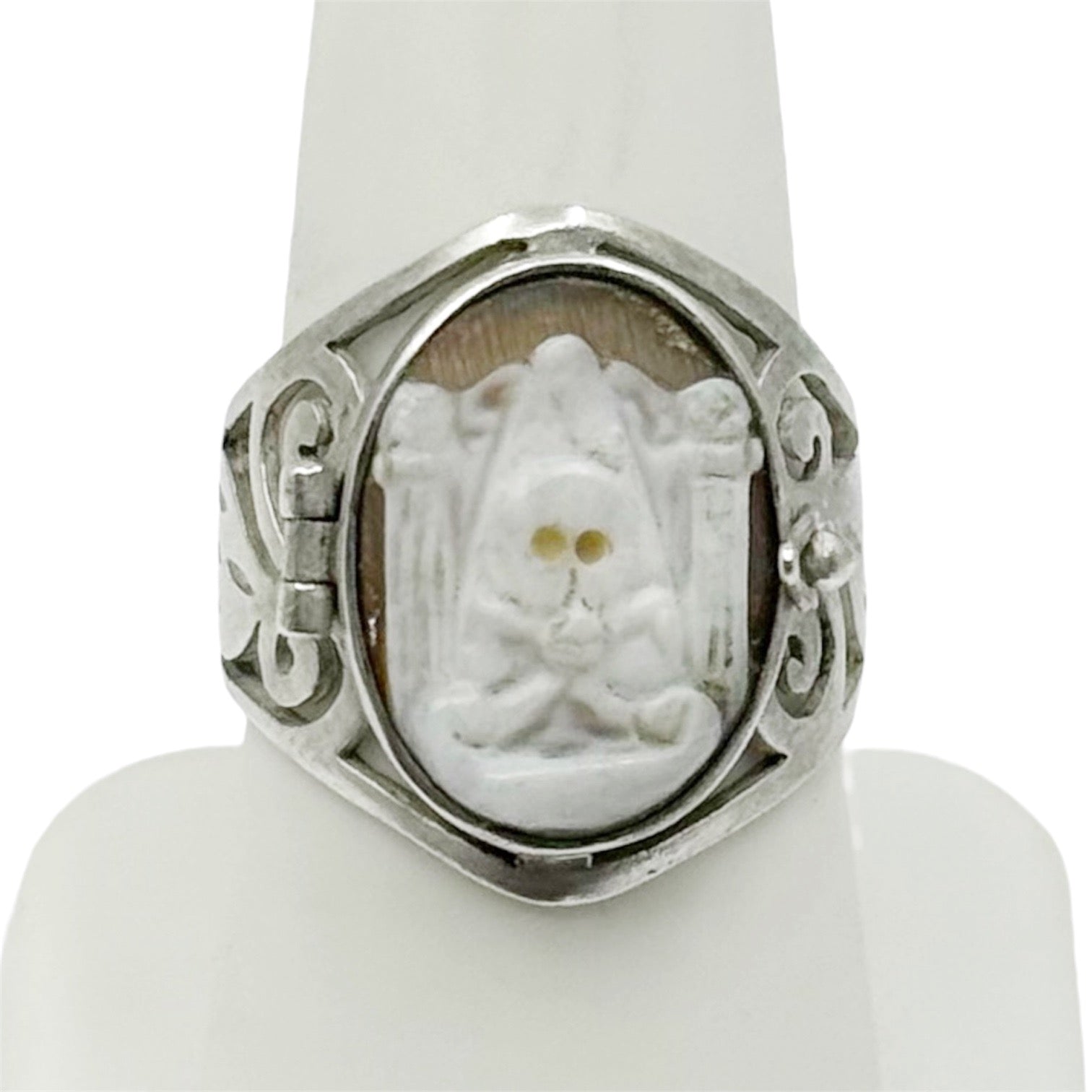 Enif Sterling silver Momento Mori shell cameo poison ring - GM76