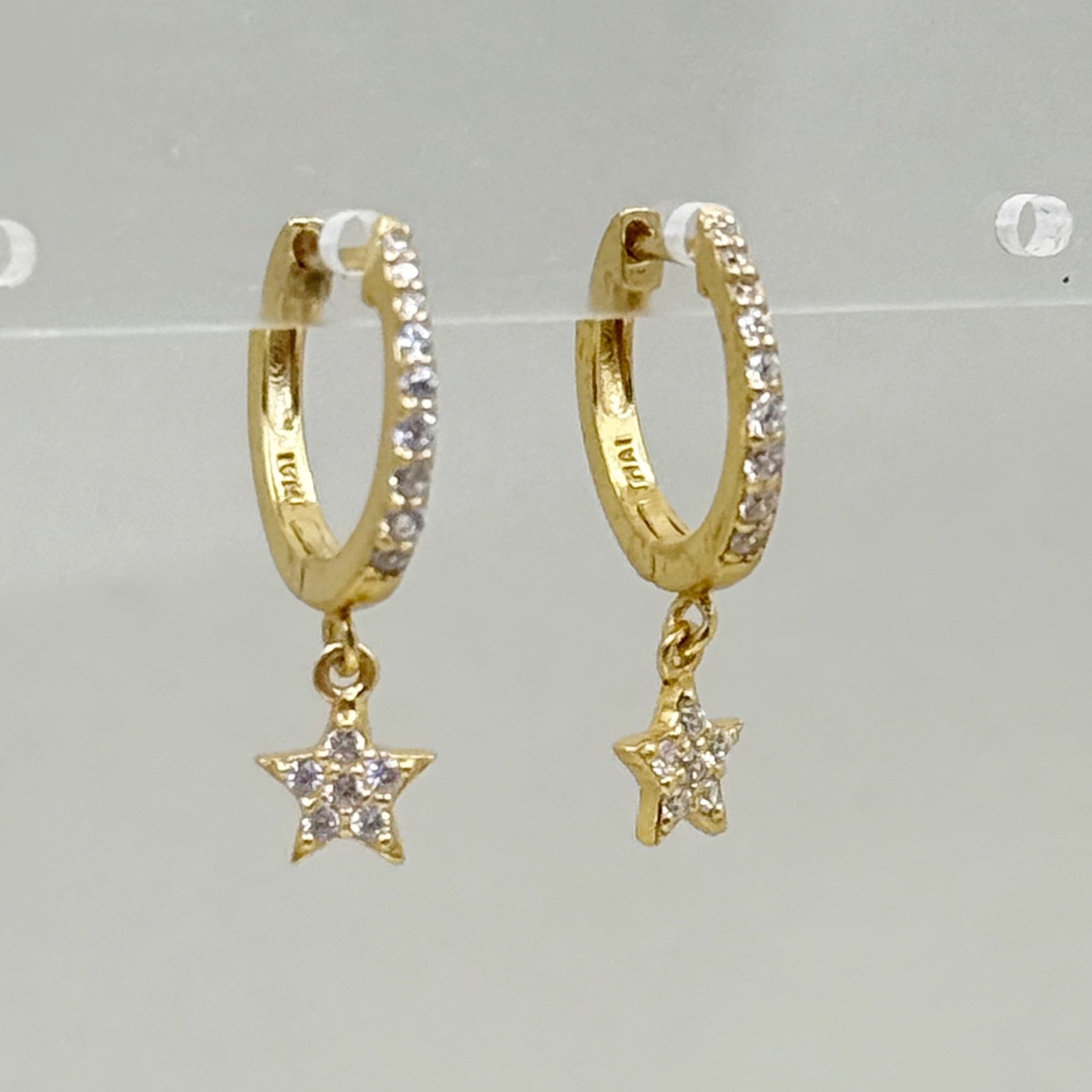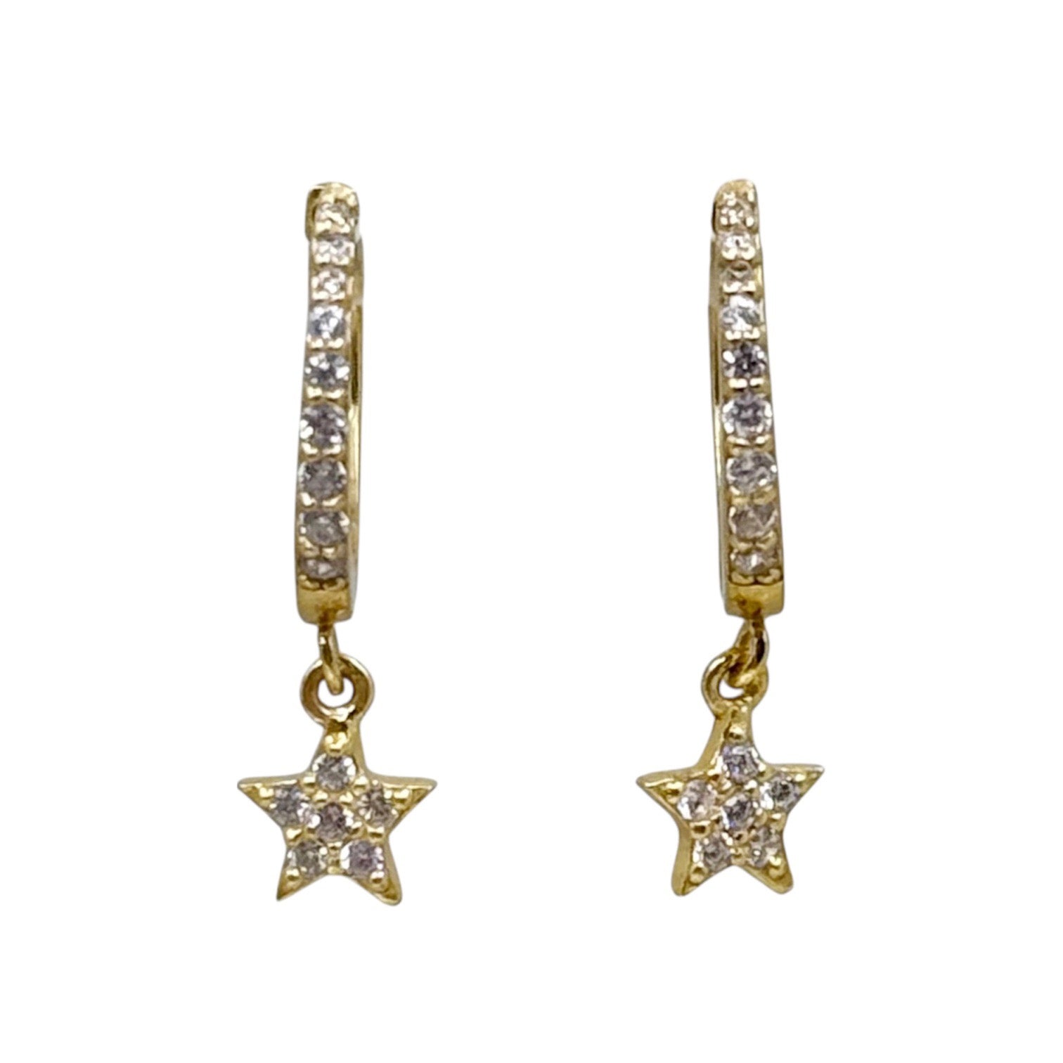 Gold vermeil sterling silver cubic zirconia star hoop earrings - GM1025