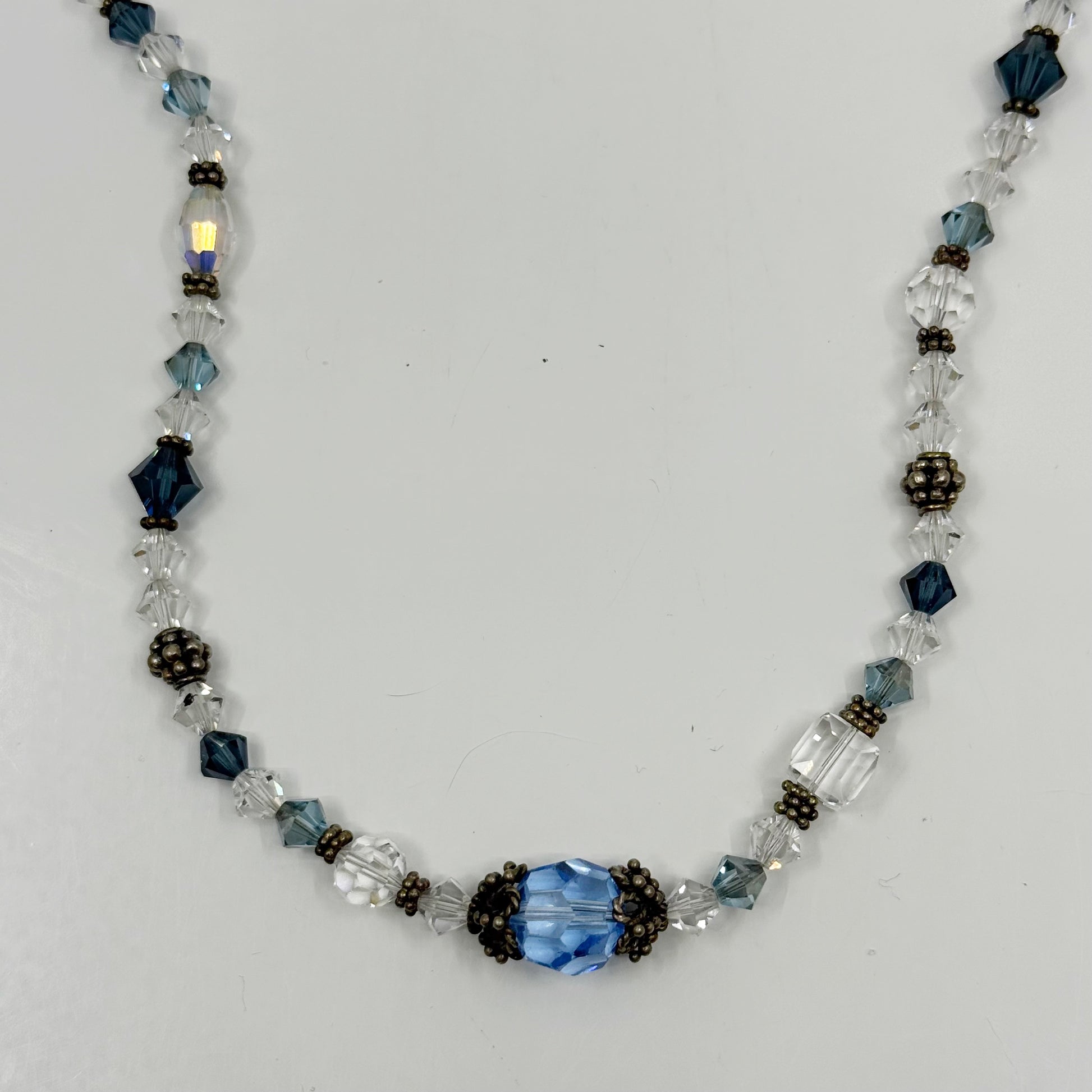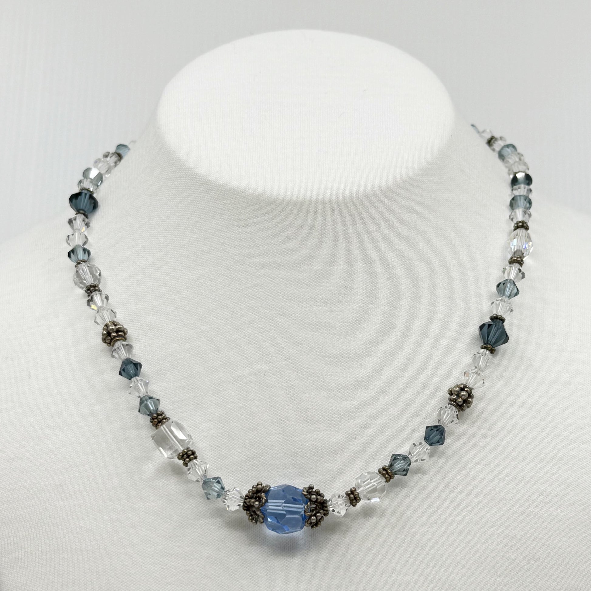 Hand Made sterling silver crystal bead necklace GM717
