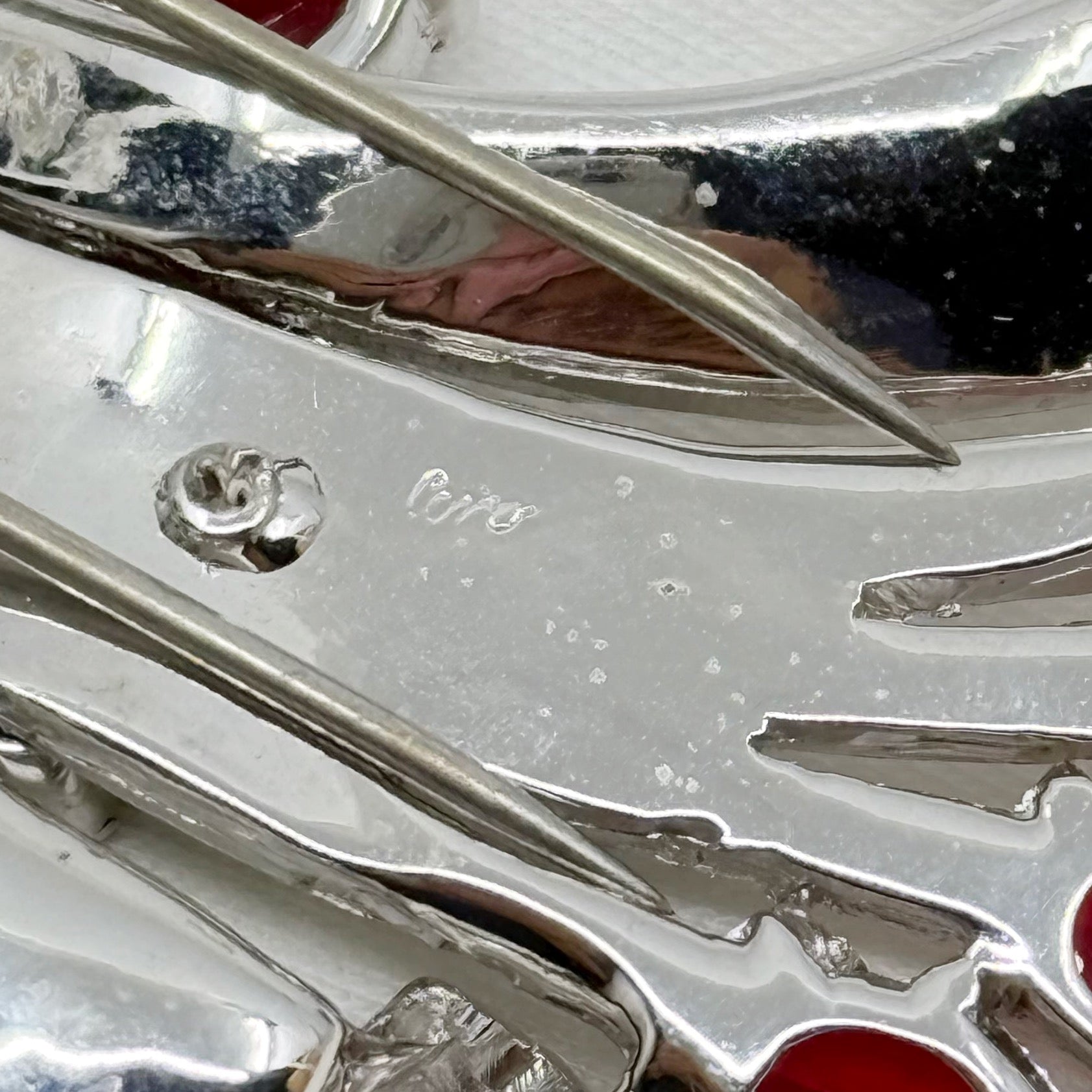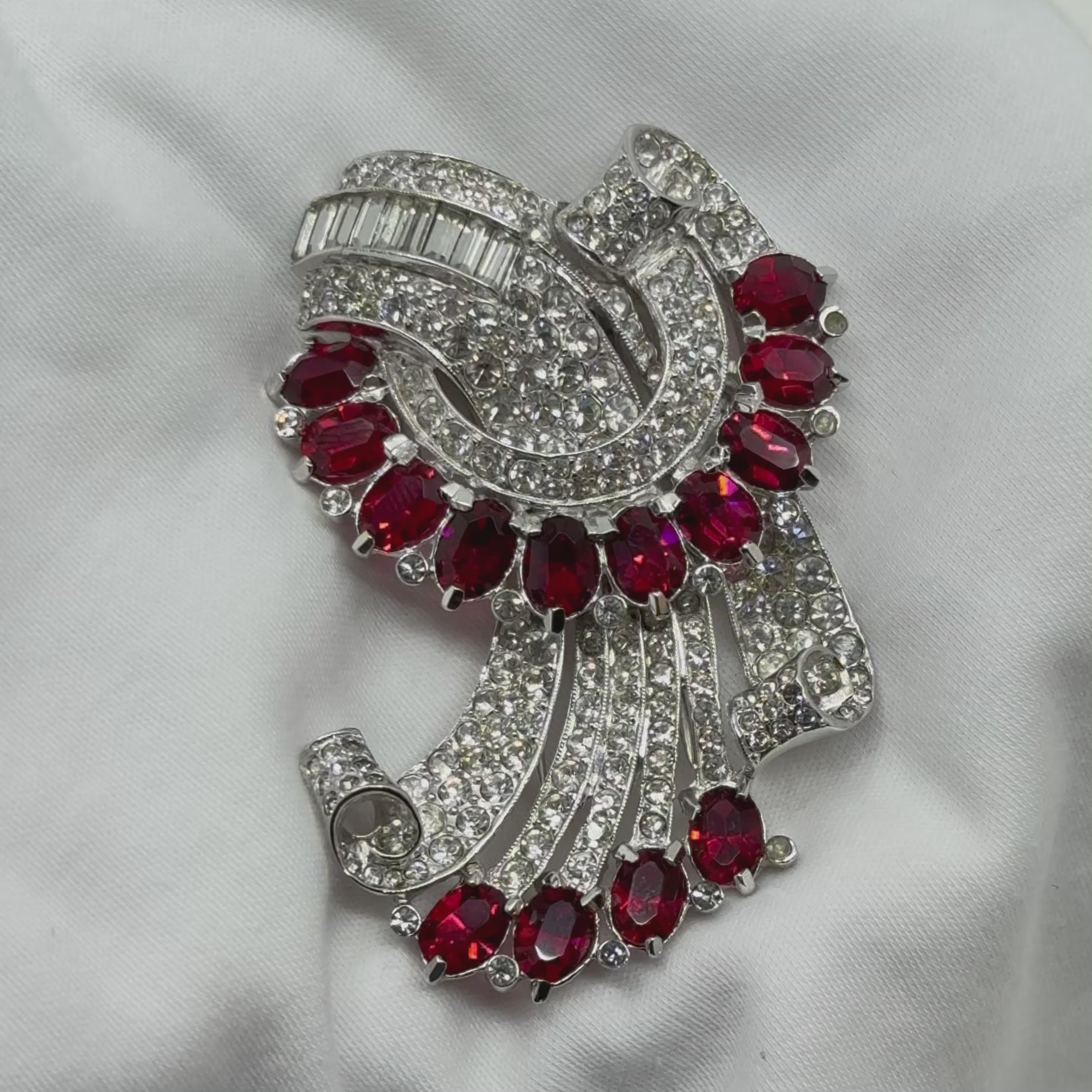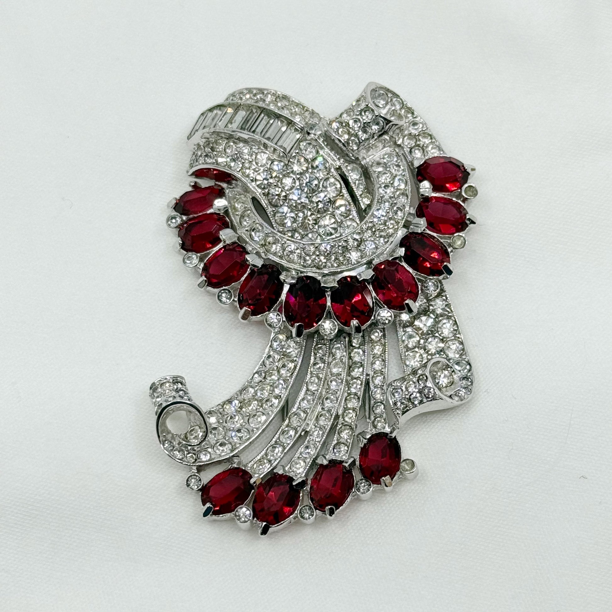 Retro Coro silver tone ruby & diamanté rhinestone spray fur clip brooch - GM30