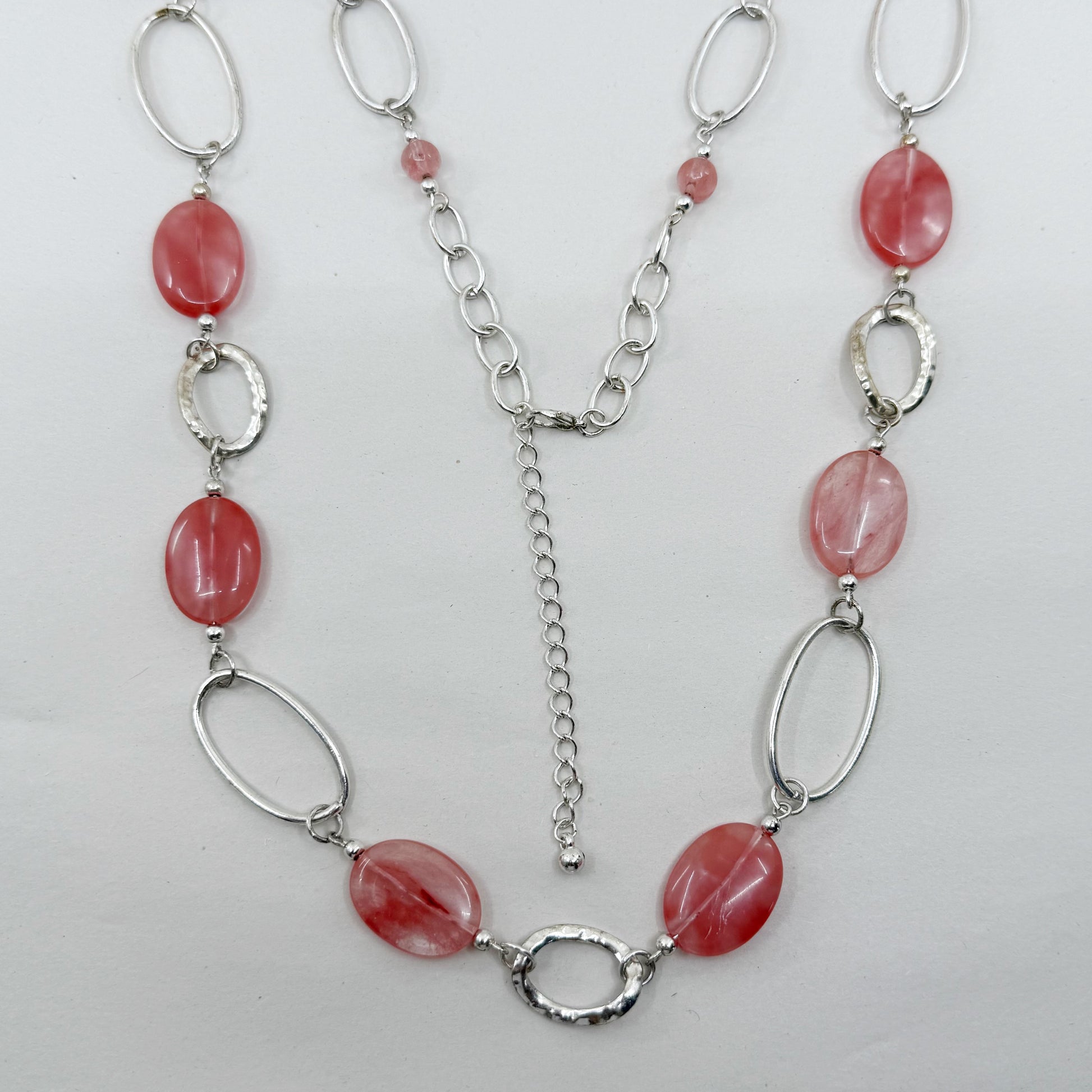 Silver tone cherry quartz bead necklace - GM1531