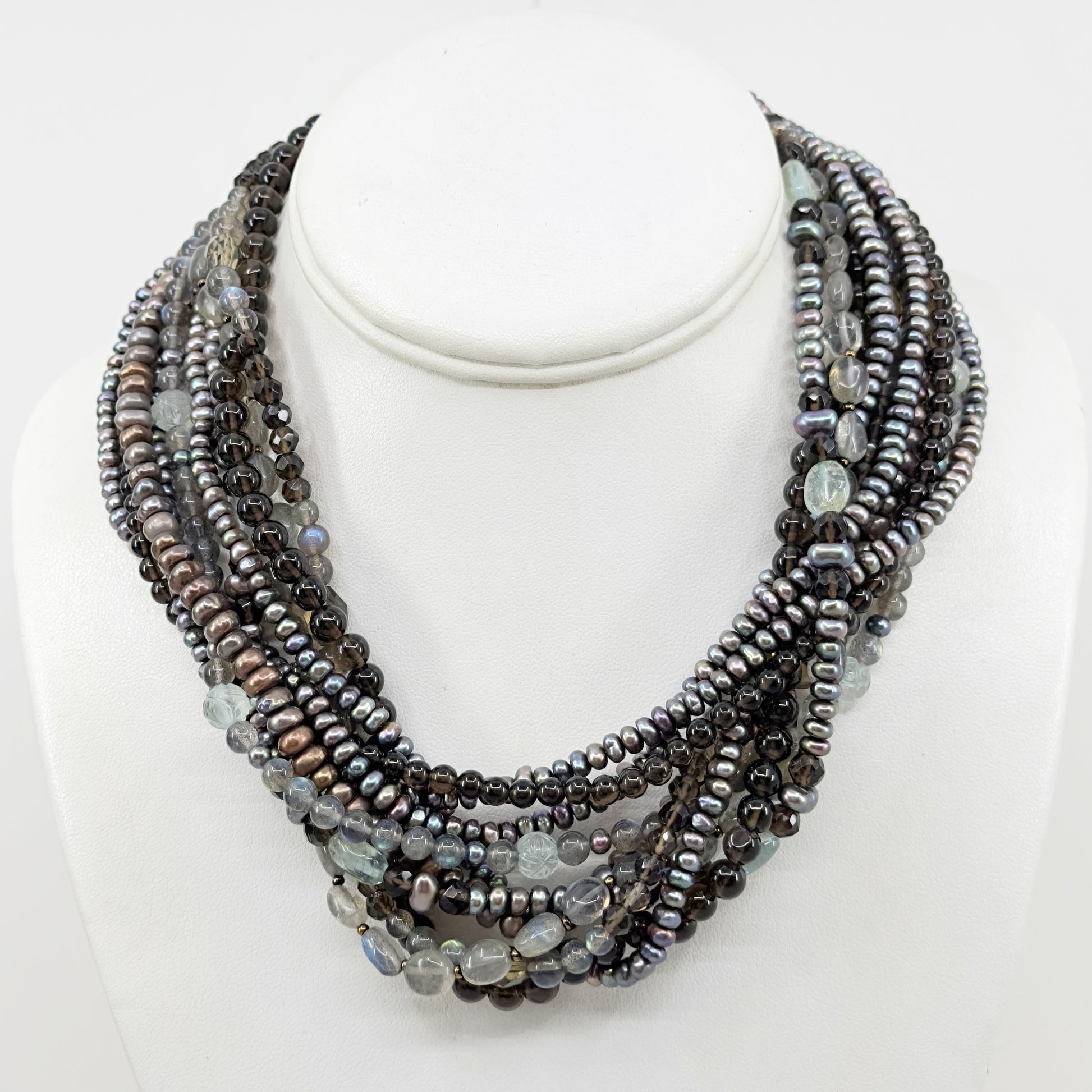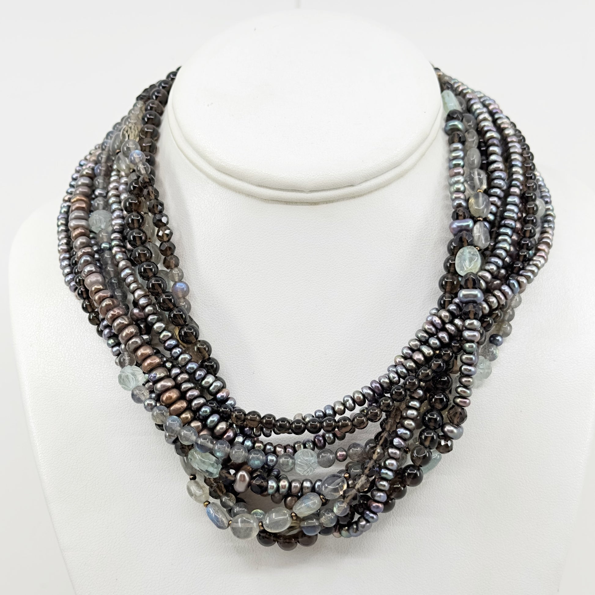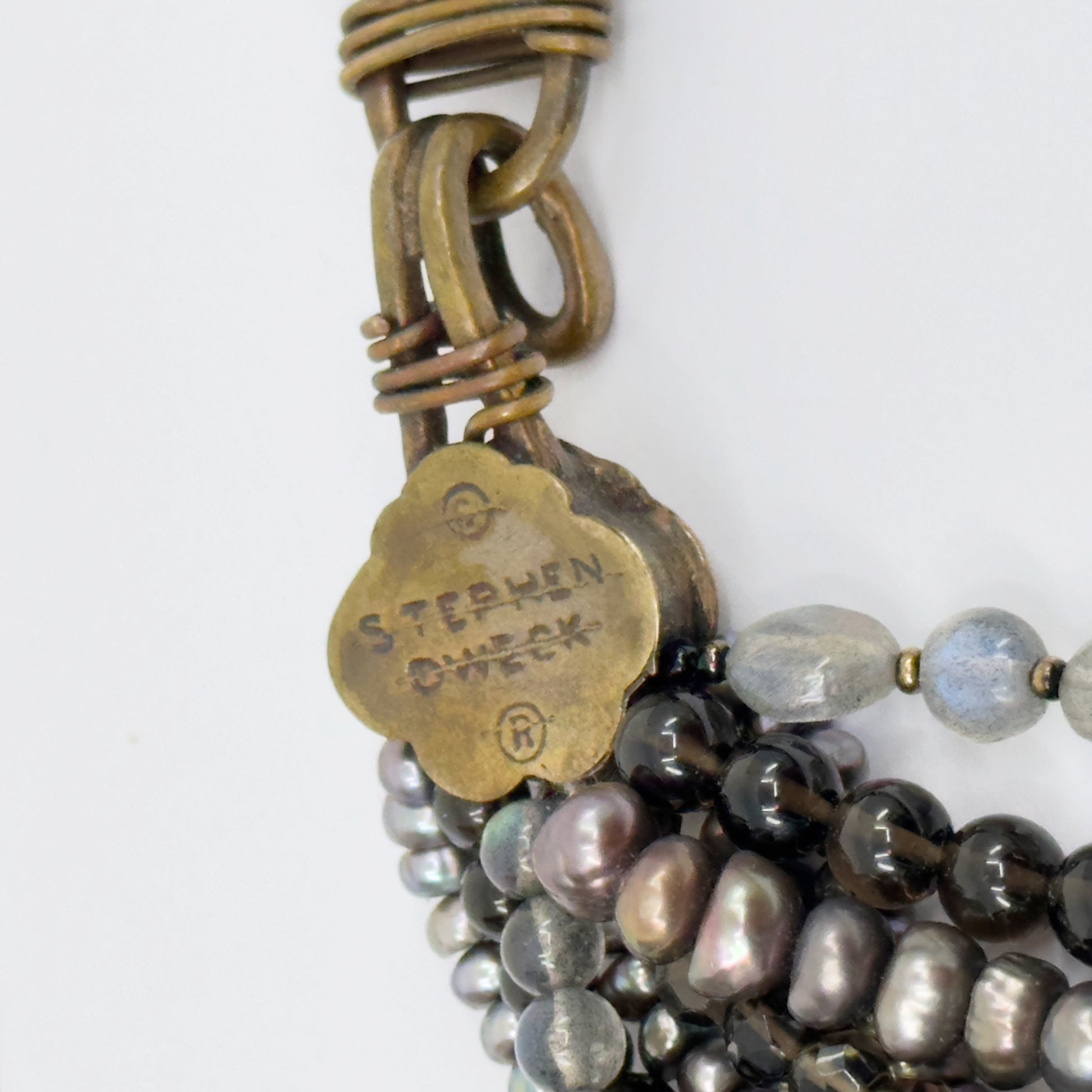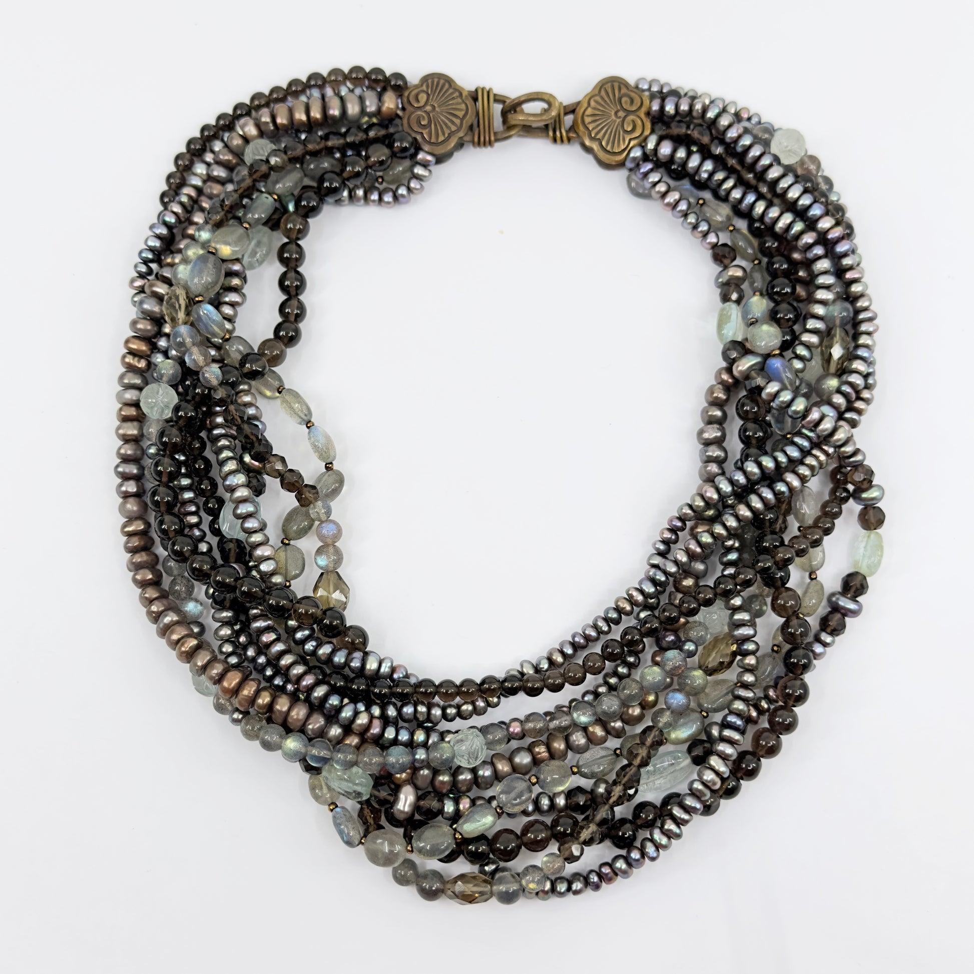 Stephen Dweck bronze pearl labradorite smoky quartz bead torsade necklace GM677