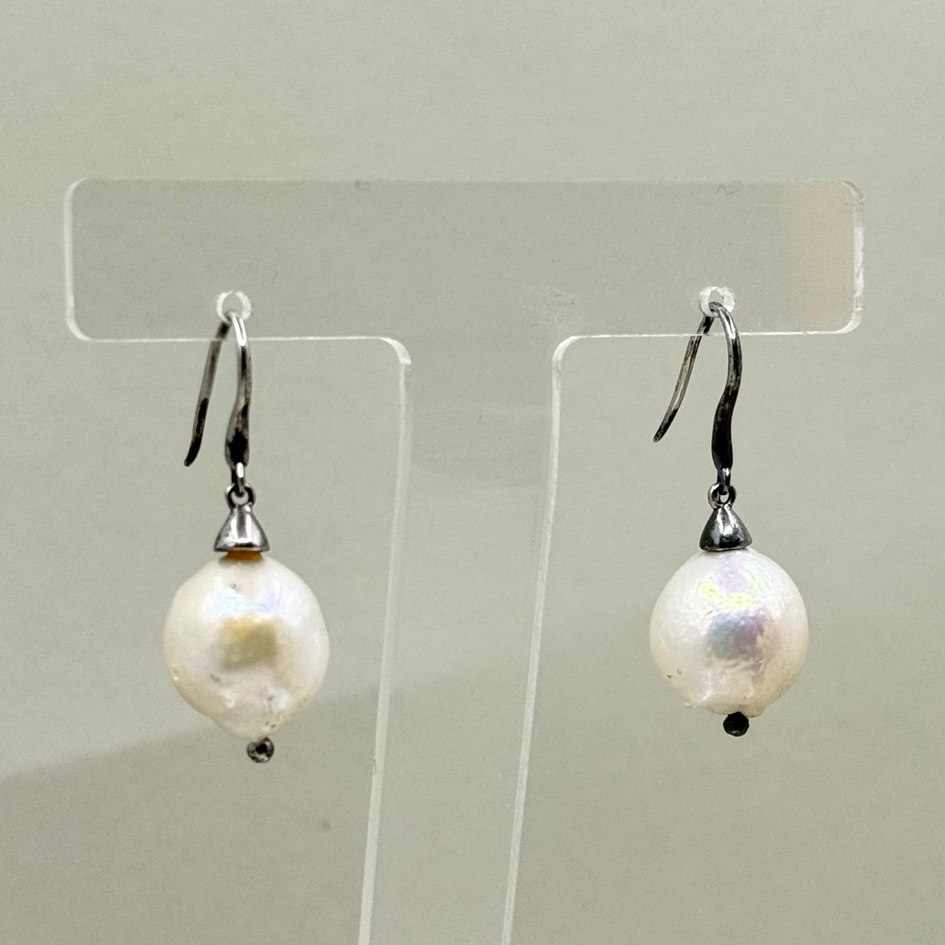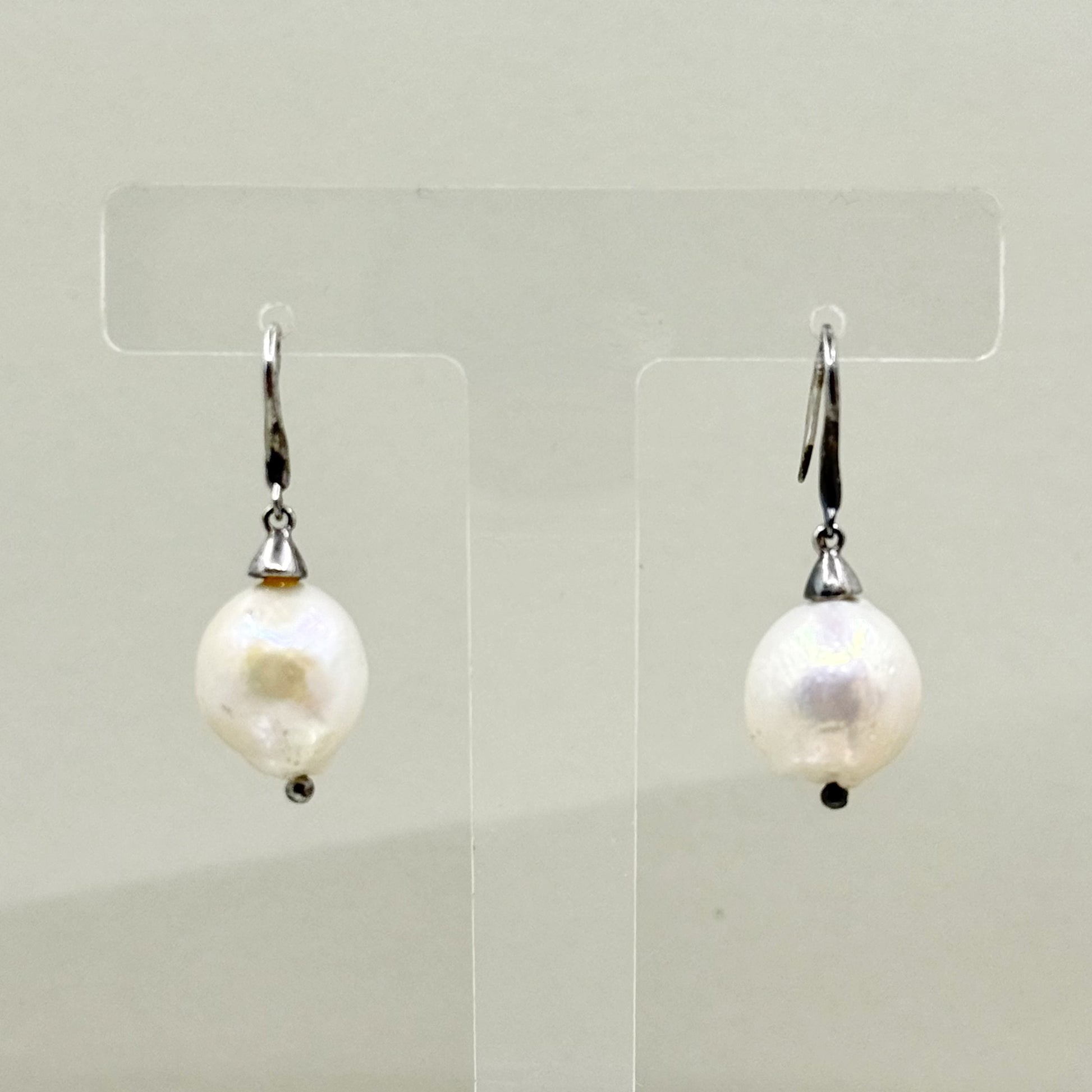sterling silver 12mm Baroque pearl drop earrings - GM43