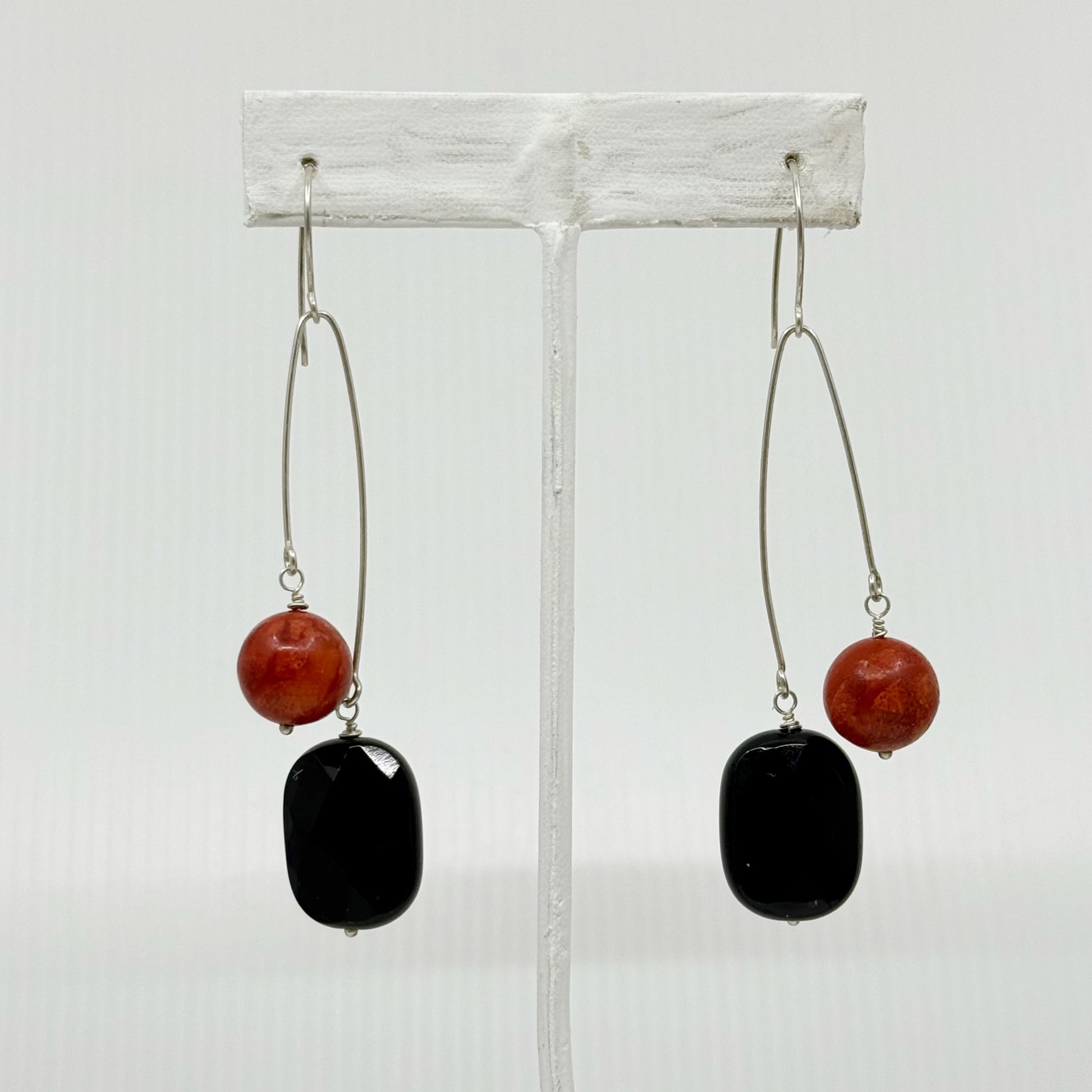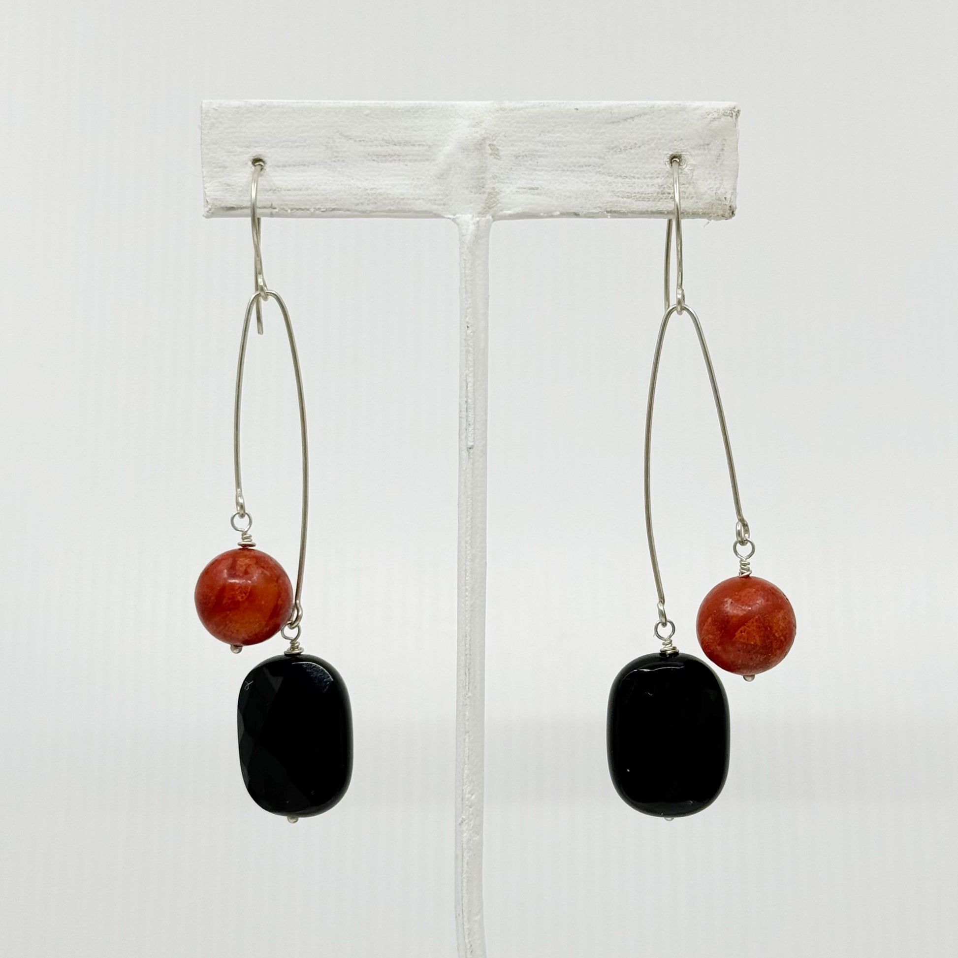 Crafted with 20x15mm onyx & 12mm sponge coral beads