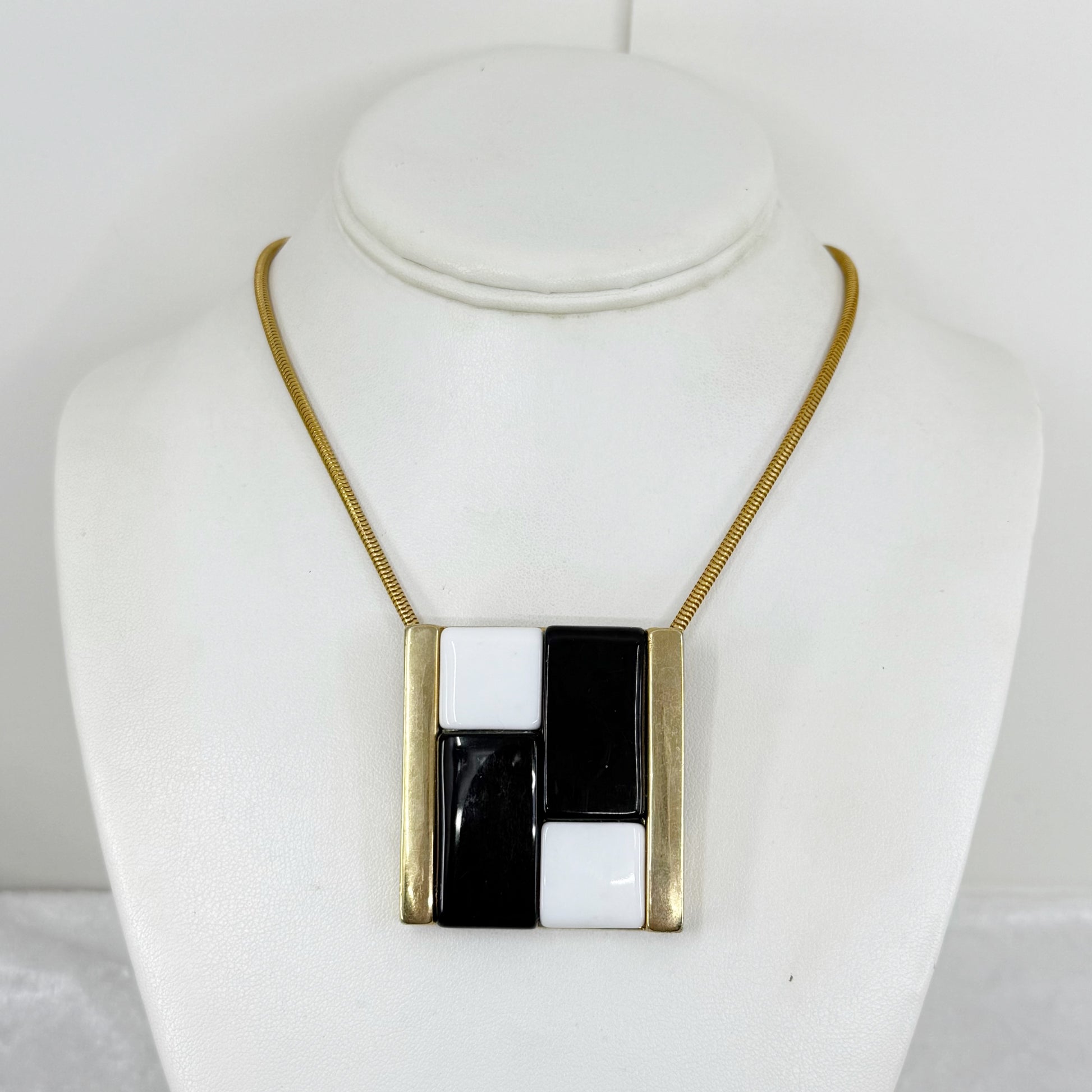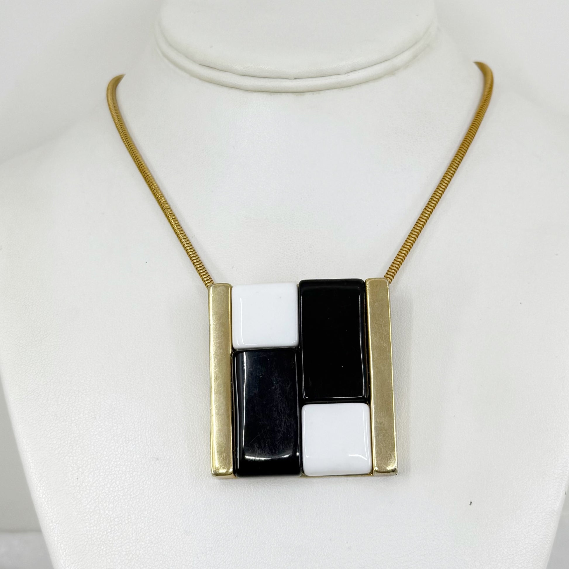 Vintage Gold tone lucite blocks pendant necklace - GM3016