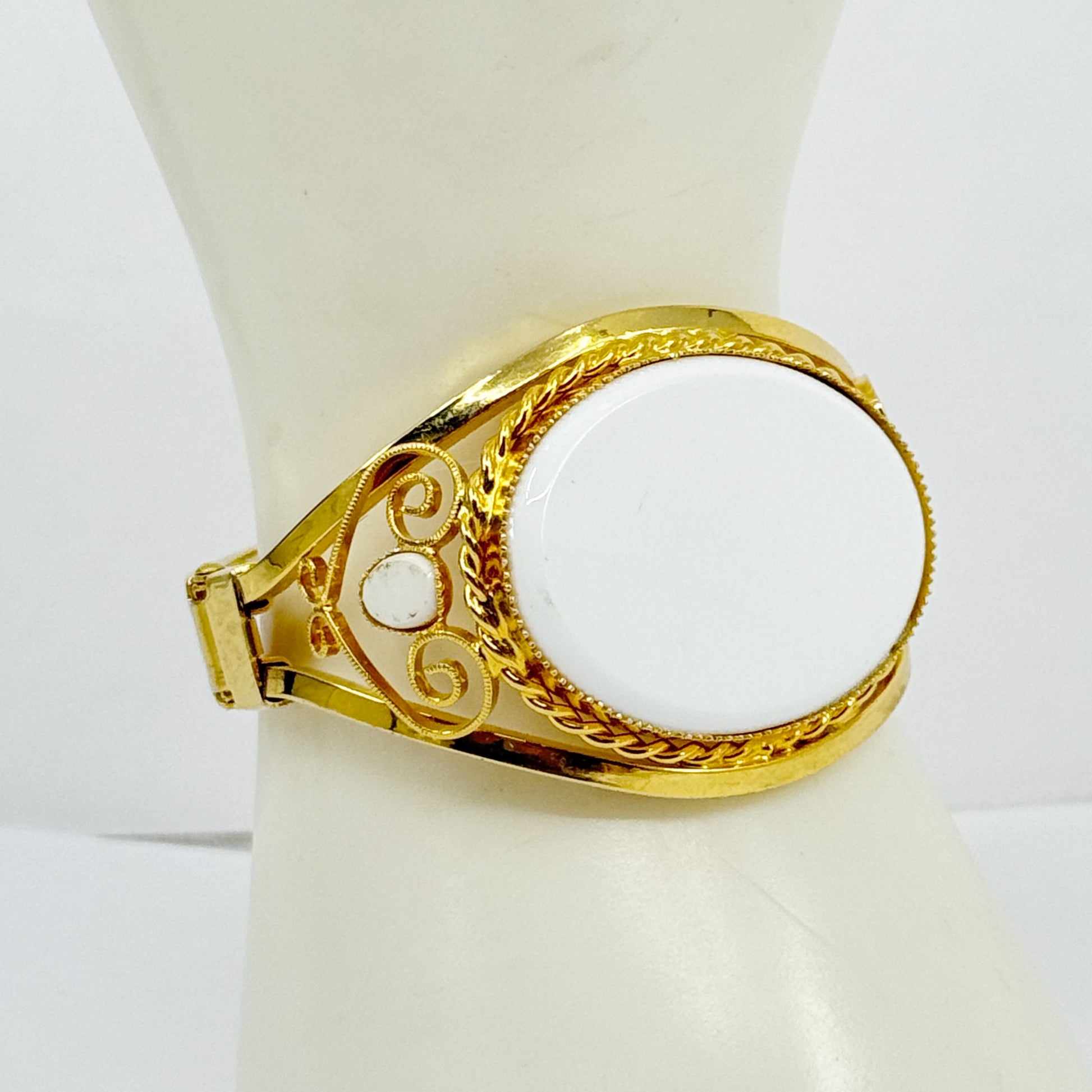 Vintage Gold tone white lucite hinged bracelet - GM3017