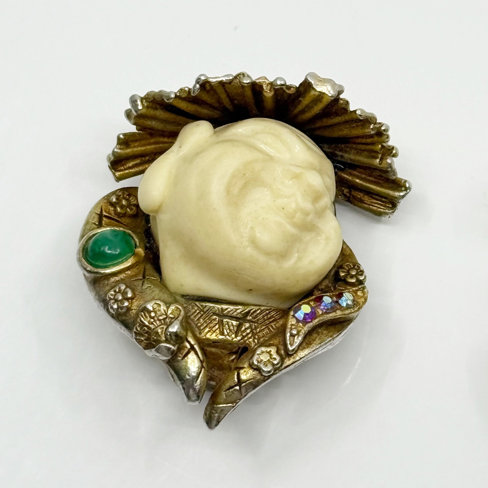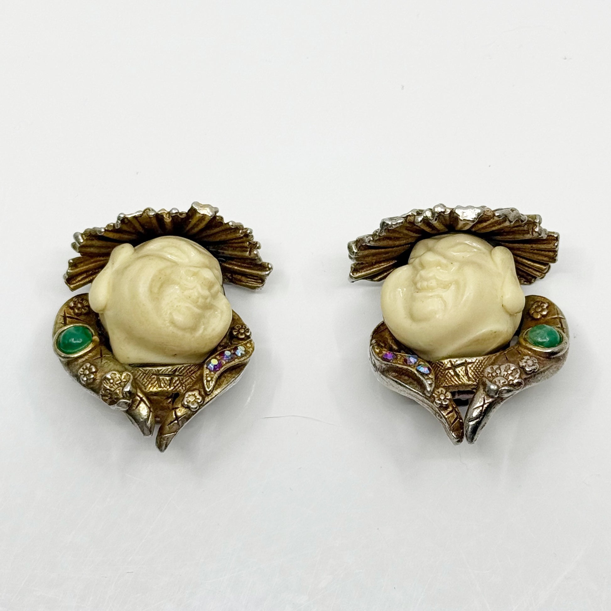 Vintage HAR gold tone laughing Buddha Clip on Earrings - GM1185