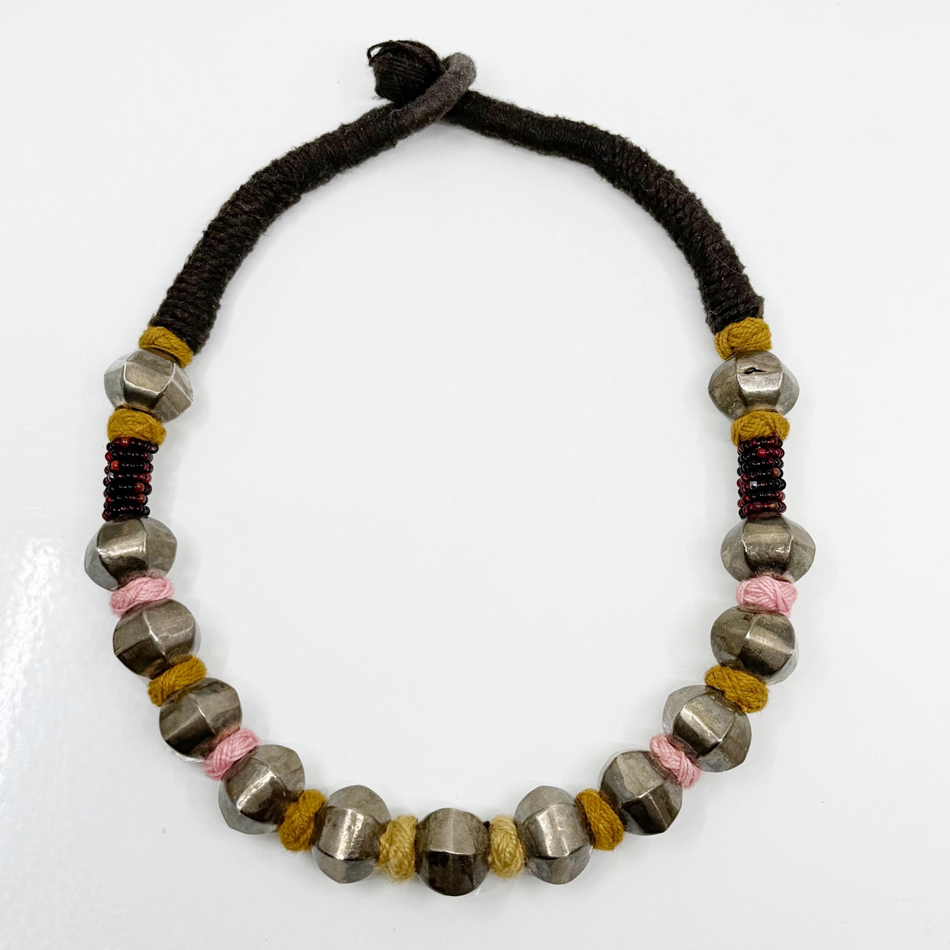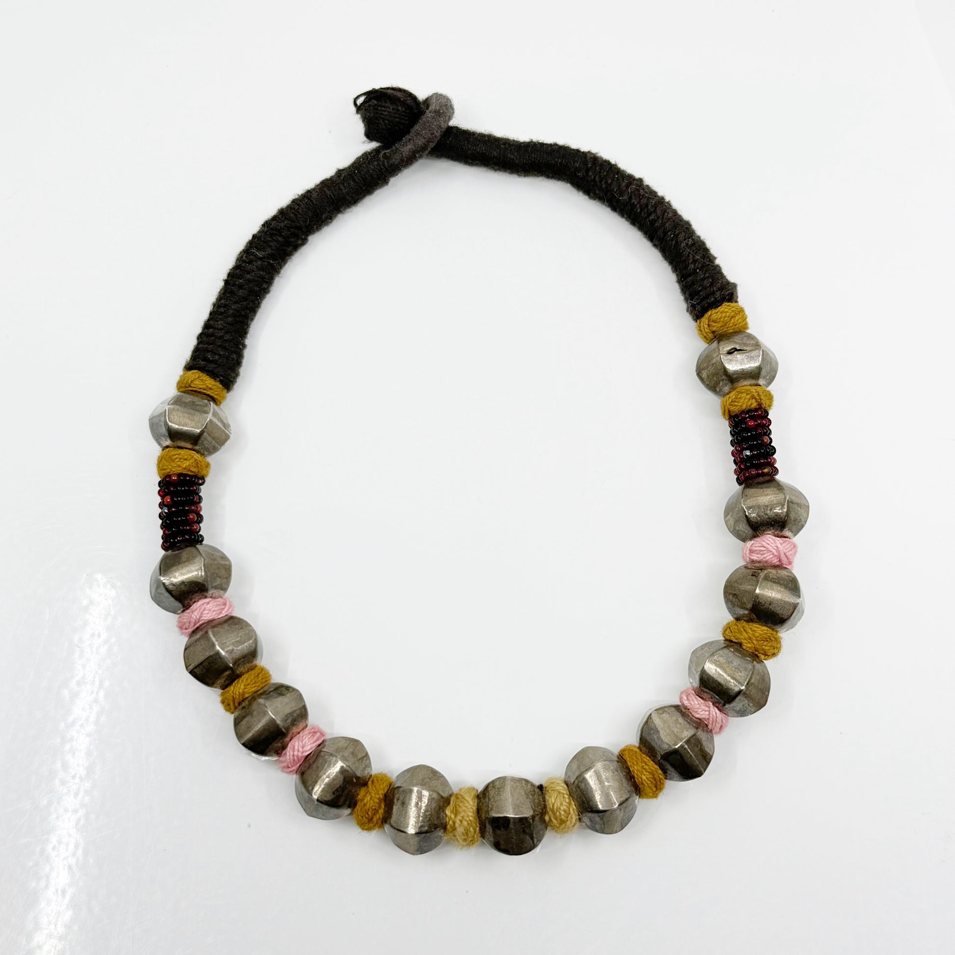 Vintage Indian sterling silver bead silk necklace - GM287
