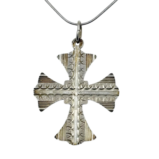 vintage sterling silver laser cut Jerusalem cross pendant - GM509