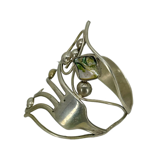 Vintage Silver Plated Mother of pearl fork bracelet - GM1563