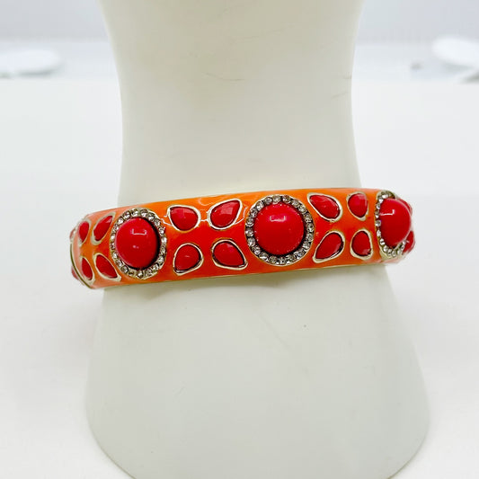 Sequin Gold tone Lucite cabochon Enamel Hinged bangle bracelet - GM1567