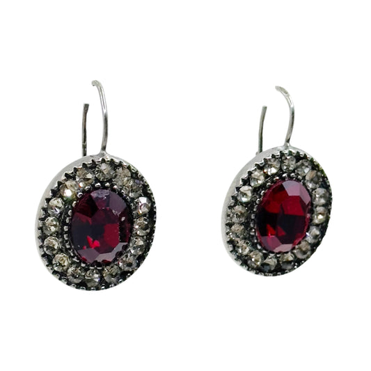 vintage Ruthenium over sterling silver foil back rhinestones earrings - GM1775