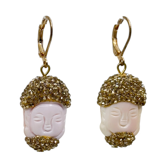 Rose Gold tone crystal & conch shell drop Buddha Earrings - GM1783