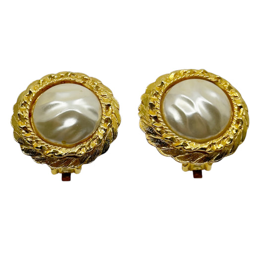Vintage Gold tone Made pearl clip on Earrings - GM1790