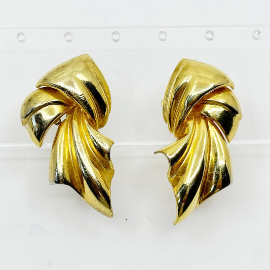 Piscitelli Gold tone Draped Knotted Scarf clip on Earrings - GM1712