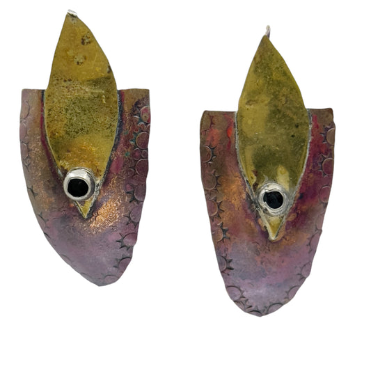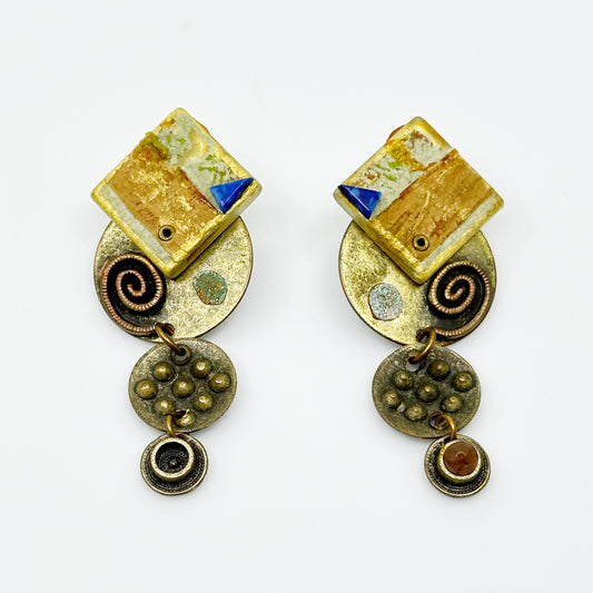 Vintage modernist Hand Made mix metal earrings