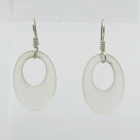 Hand Made Sterling silver frosted rock crystal earrings - GM413