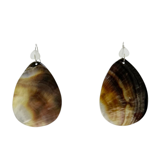 Hand Made Sterling silver rock crystal & shell earrings - GM425