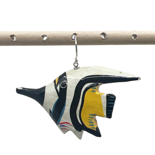 Sterling silver hand painted wood fish earrings - GM435