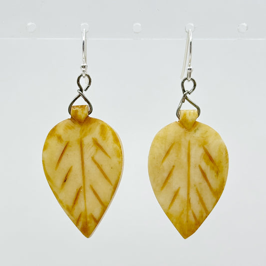 Hand Made Sterling silver carved bone leaf earrings - GM416