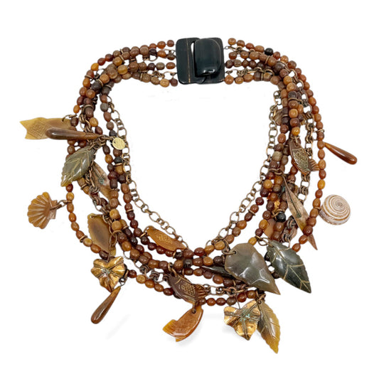 vintage Gerda Lynggaard for Monies horn Copper shell multistrand necklace - GM261