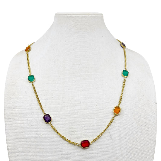 Vintage gold tone acrylic gemstone chain necklace - GM1588