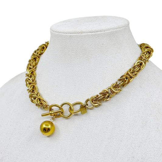 Vintage Gold tone Bones & Spheres link necklace - GM1599