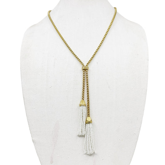 J.Crew Gold tone white bead Tassel lariat necklace - GM1715