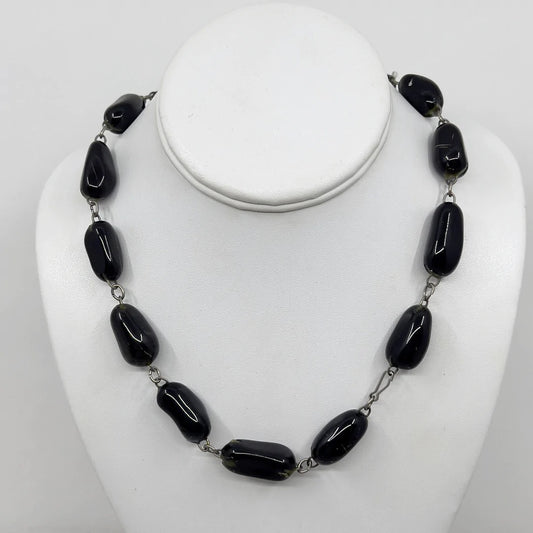 Vintage black tourmaline nugget bead necklace - GM1758