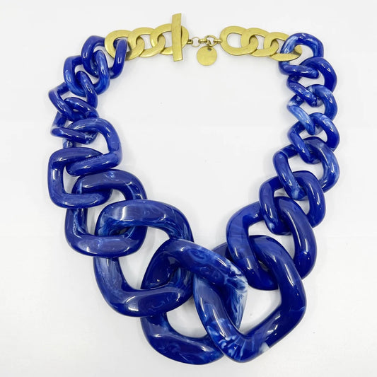 oversized acrylic link & brass link necklace - GM1766